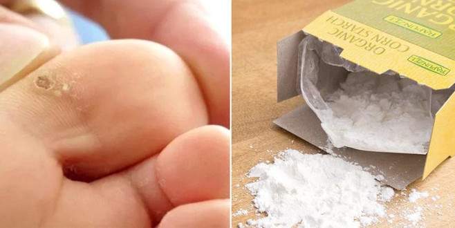 Ayak parmakları arasına veya ayakların üstüne darı nişastası dökün ve sorunlardan kurtulun.