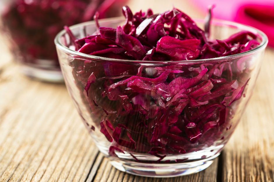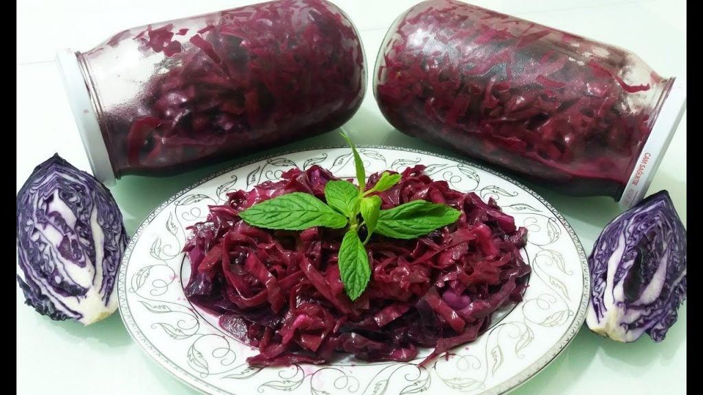 Kırmızı lahanayı ince ince doğruyoruz. üzerine kaya tuzunu döktükten sonra elimizle karıştırıyoruz.  Bu karışımı cam kavanoza koyun ve suyunun salmasını bekleyin, 2 saat sonra üzerine elma sirkesini ilave edebilirsiniz.