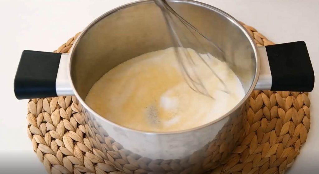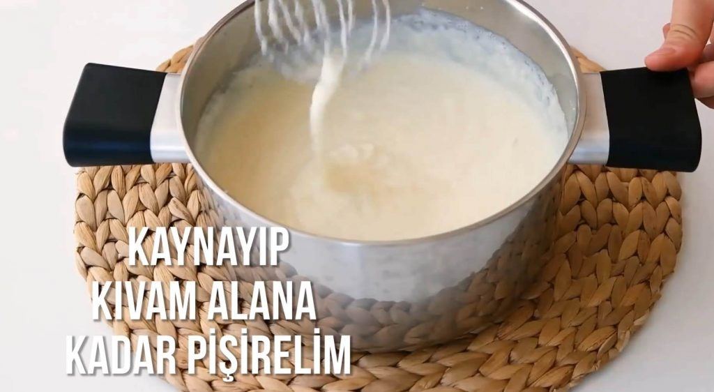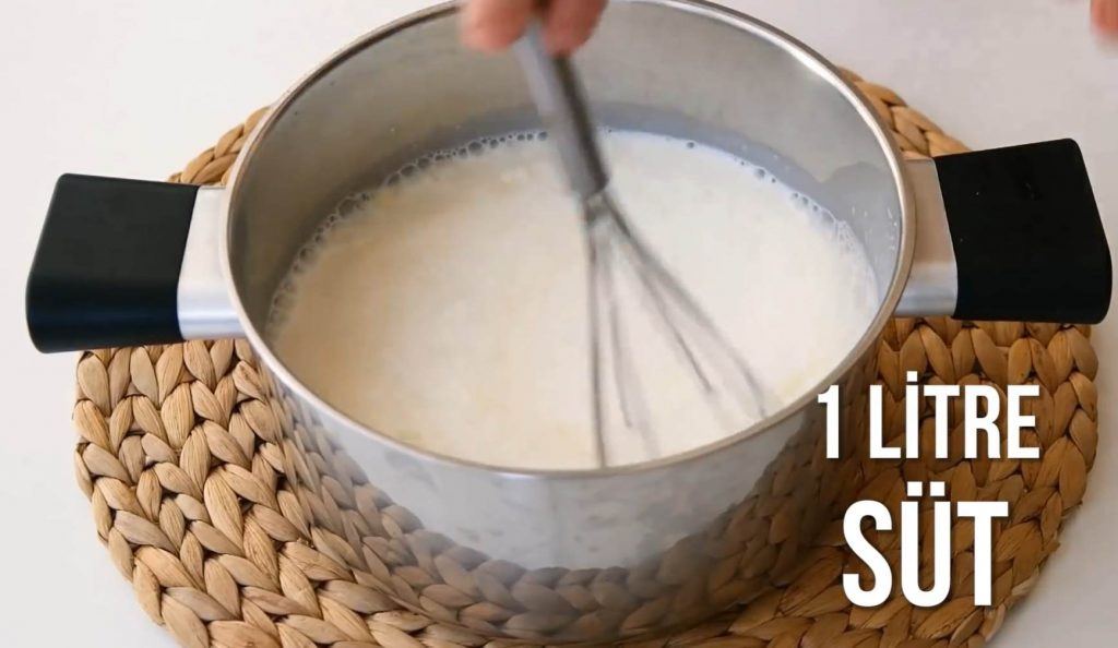 Bu malzemelerin üzerine 1 litre süt ilave edelim ve karıştıralım
