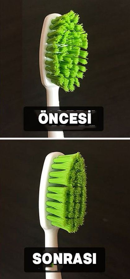 Eski diş fırçanızı canlandırmak, aslında düşündüğünüzden daha kolaydır. Diş fırçanızın bükülmüş kıllarını kurtarmak için bir kaseye kaynar sıcak su dökün ve fırçanın etrafında dönün.