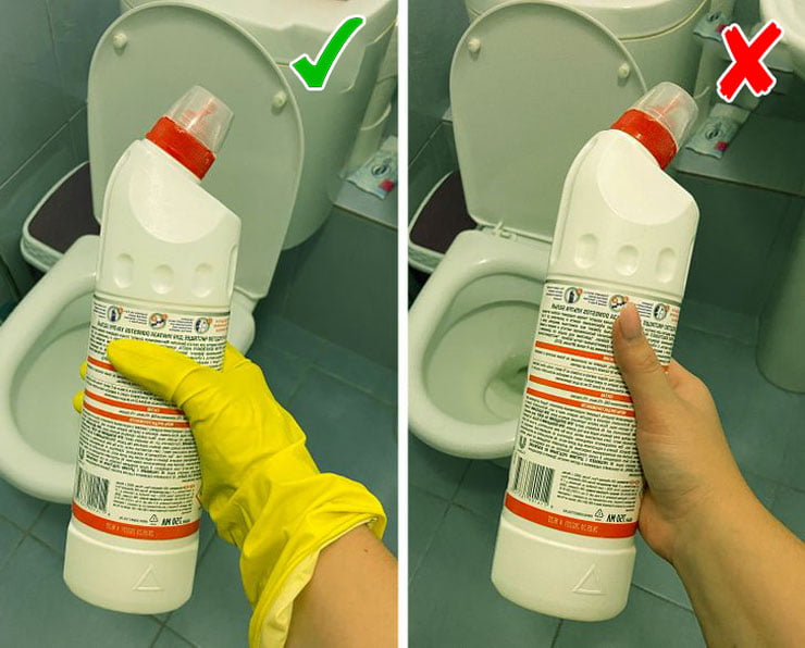 Tuvalet ve lavaboları yıkamak için güçlü kimyasal maddeler (çeşitli dezenfekte edici ve antibakteriyel deterjanlar) kullanmaya alışkınız. Ancak çok azımız bu ürünleri eldiven ve maske gibi korumalarla kullanıyor. Aktif maddeler deri ile temas ettiğinde tahrişe ve hatta kimyasal yanığa neden olabilir. Kimyasalı solumak da tehlikelidir. Üreticiler bu ürünleri sadece iyi havalandırılmış alanlarda kullanmanızı tavsiye etmektedir.