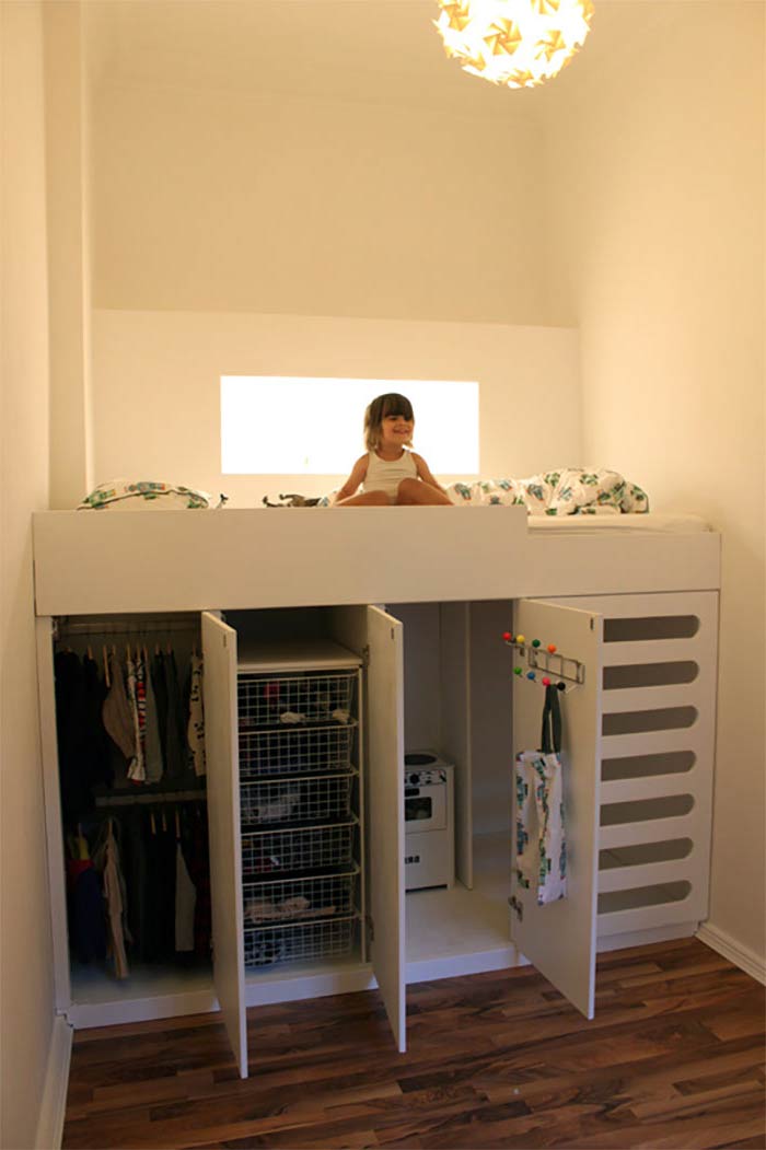 9. Çocuklarınız için hem yatak hem giyinme dolabı