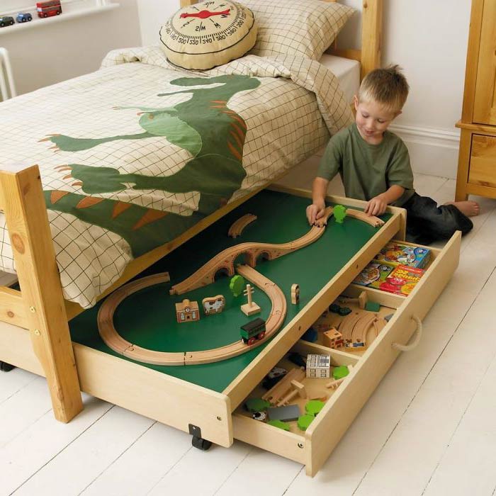 10. Yatağın altını oyun çekmecesi yapabilirsiniz