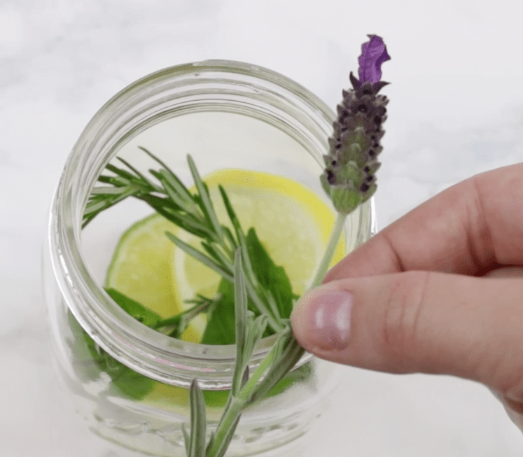 Bir limonu güzelce daireler halinde dilimleyin ve bir kavanoza alın, ardından kavanozun içine taze biberiye ve fesleğen yaprakları ekleyin. Birkaç damla da limon otu yağı damlatın.