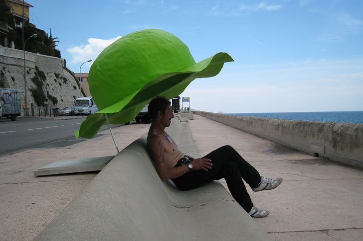 Deniz kenarındaki banklara sabitlenen bu şapkalar sayesinde hem başınıza güneş geçmiyor hem de yağmurdan korunuyorsunuz.