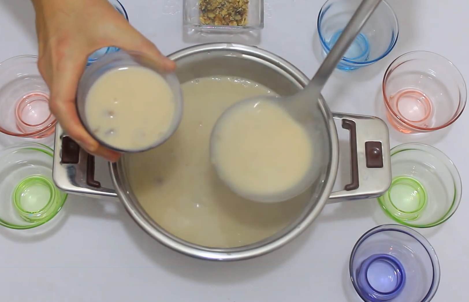 – Biraz soğuyup oda sıcaklığına geldiğinde sütün içine şekeri, pirinç ununu ve bademi ilave edip tekrar ocağa alalım.