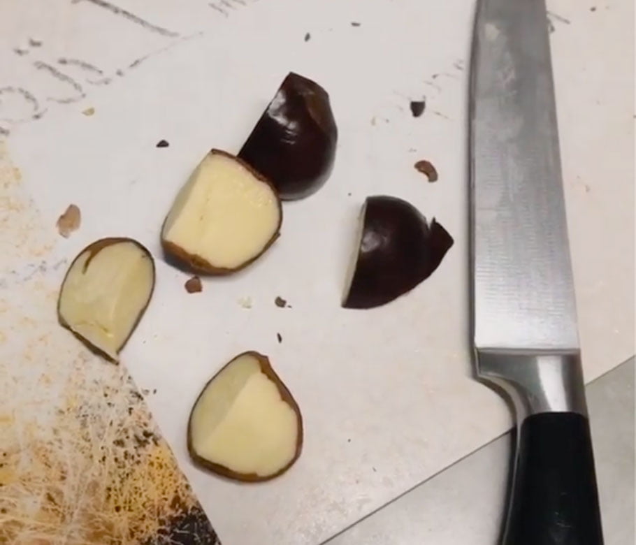 Kavanozun içine su doldurun ve 1 adet kestaneyi dörde bölerek kavanozun içine atın ve kapağını kapatın.