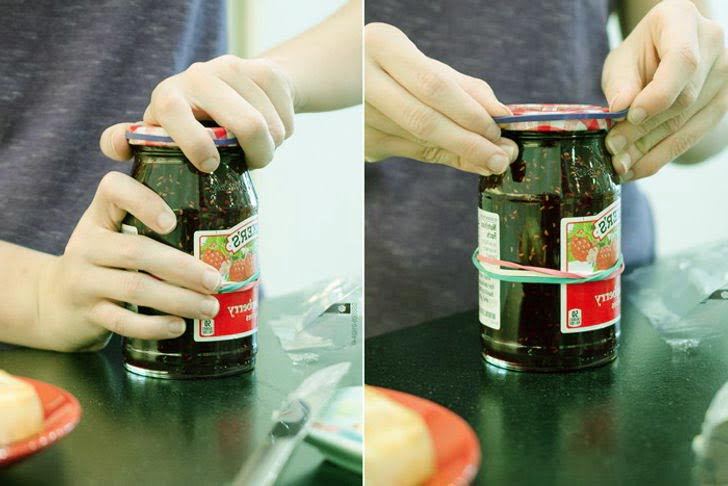 Hemen hemen herkes havlu kullanarak sıkı bir kavanoz kapağını açmaya çalışmıştır. Ancak bu asırlık numara işe yaramazsa, bir alternatifimiz var: gösterilen fotoğraftaki gibi sıradan bir lastik bant kullanmayı deneyin . Sonuç sizi şaşırtabilir.