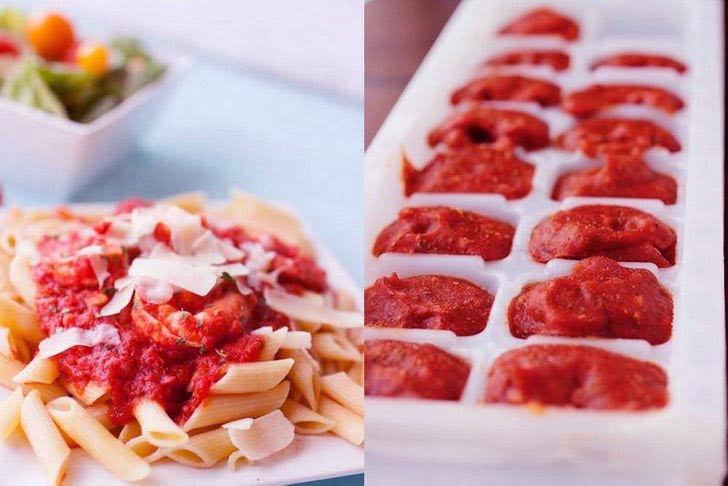 Artmış makarna sosunu buz küpü kalıplarına koyun ve dondurun. Uygun bir yemek yapmak için zamanınız olmadığında hemen çıkartıp kullanabilirsiniz. Tekrar ısıtın ve anında hazır olsun.