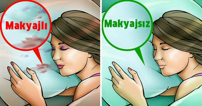Makyajla beraber uyumak tahmin etmeyeceğiniz sorunlarla uğraşmanıza sebep olabilir. Yatağınızı bozmanın yanı sıra görünümünüze de zarar verebilir. Düzenli olarak tonlarca ürünle yatıyorsanız, kendinizi bazı ciddi risklere maruz bırakıyor olabilirsiniz.