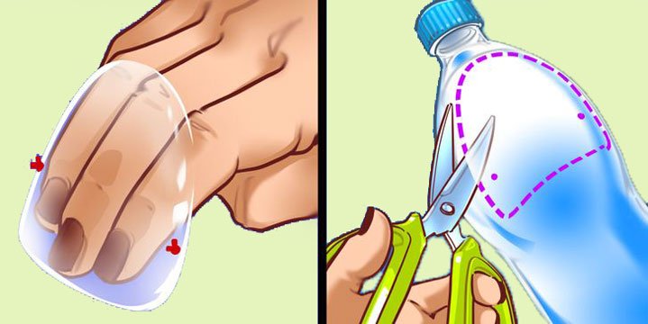 Sebzeleri doğrarken parmaklarınızı kesmek sinir bozucu. Bundan kaçınmak için kendi parmak korumanızı hızlı bir şekilde oluşturabilirsiniz. Ve sadece plastik bir şişeye ve bir lastik banda ihtiyacınız var. Normal bir plastik şişe alın (Kola veya su şişesi gibi) ve şişenin tepesinden resimde gösterildiği gibi bir parça kesin. Ardından kenarlara 2 delik açın ve lastik bandı takın. Şimdi doğrama sırasında bu koruyucuyu parmaklarınızın üzerine koyarak kullanabilirsiniz.
