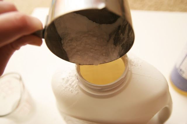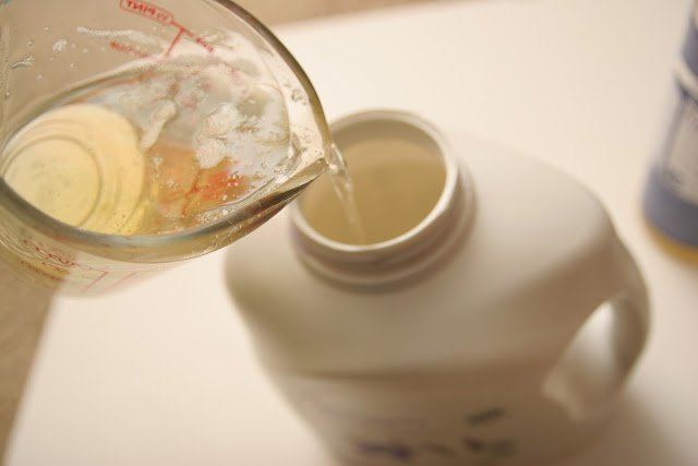 Sıvı sabunu deterjan şişesine koyun ve ardından karbonatı ekleyin. Sonrasında seçtiğiniz bitki özü yağını da ekleyin ve kalan kısmı sıcak su ile doldurun. (sıcak su koyun ki karbonat daha rahat erisin) Ev yapımı deterjanınızı hazır.