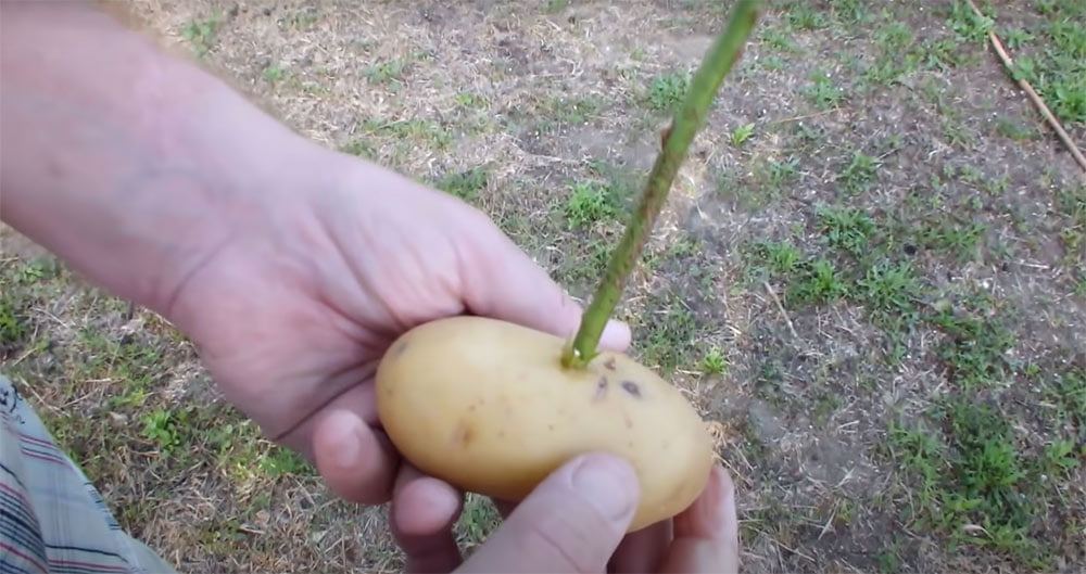 Daha sonra patatesin ortasını bir çubuk ya da sivri bir bıçak yardımıyla yarısına kadar oyun.