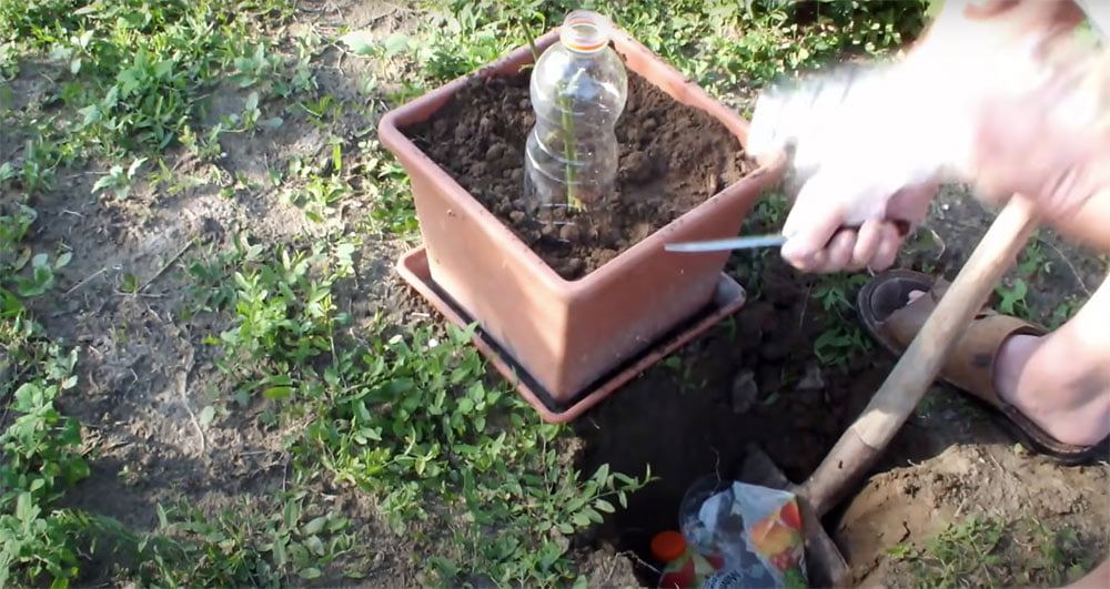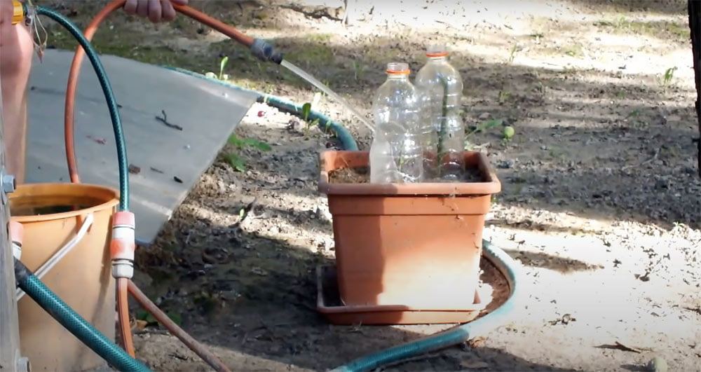 Ardından üzerini toprakla kapatın. Ve pet şişeleri keserek sapın üstüne yerleştirin. İşlemimiz bu kadar.