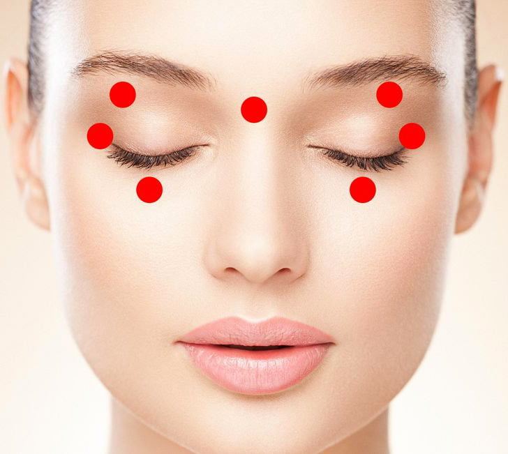Telefon kullanımı yaygınlaştıkça göz yorgunluğu da önemli düzeyde arttı. Yorgun gözleriniz için göz çevrenizdeki refleksoloji noktalarına masaj yapmayı deneyin. Bazı araştırmalara göre bu masajın ruh halini değiştirdiği gözlenmiştir. Resimde gördüğünüz noktalara daireler yaparak masaj yapın.