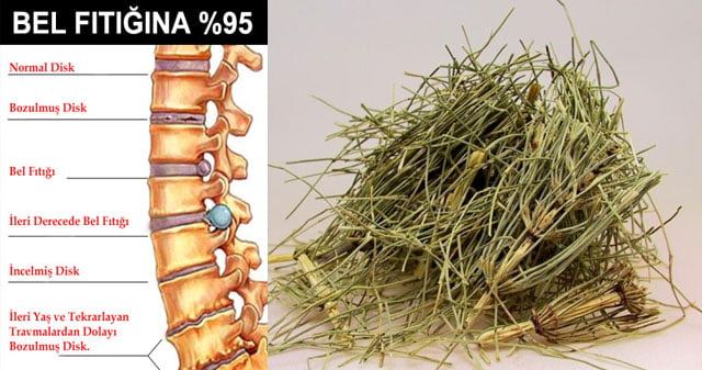 Kırkkilit otu yani at kuyruğu bitkisini kireçsiz bir bardak su ile beraber bir kaba alıyor ve kaynatıyoruz. 5 dakika sonra ateşten alarak soğumasını bekliyoruz ve ardından suyunu süzerek fıtık oluşan bölgeye nazikçe yediriyoruz.