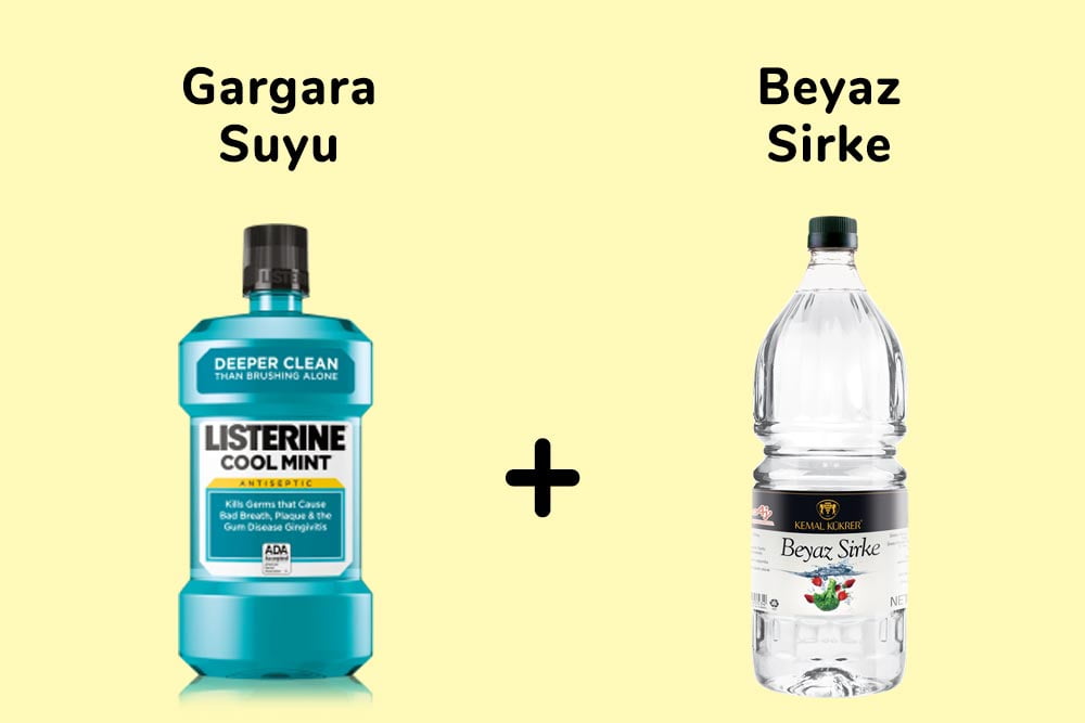 1 bardak gargara suyu, 1 bardak beyaz sirke, 2 bardak su. Bu malzemeleri bir yerde karıştırın ayaklarınızı bu karışıma batırın 15 dakika boyunca bekleyin. Ayaklarınızı çıkarın ve ölü deriyi temizlemek için süngertaşı ile topuklarınızı ovun.