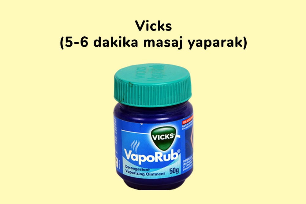 Yatmadan önce topuklarınızdaki çatlak bölgelerin tamamına Vicks sürün. 5-6 dakika masaj yapın ve pamuklu çorap giyerek uyuyun. Ertesi gün ılık suyla ayaklarınızı yıkayın yumuşacık olduğunu farkedeceksiniz.
