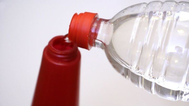 İlk yapmanız gereken sirkeyi bir püskürtme başlığına sahip şişeye almak ve tuvalete güzelce püskürtmek. Ardından, karbonatı güzelce serpiyoruz. 2 yemek kaşığı yeterli olacaktır.